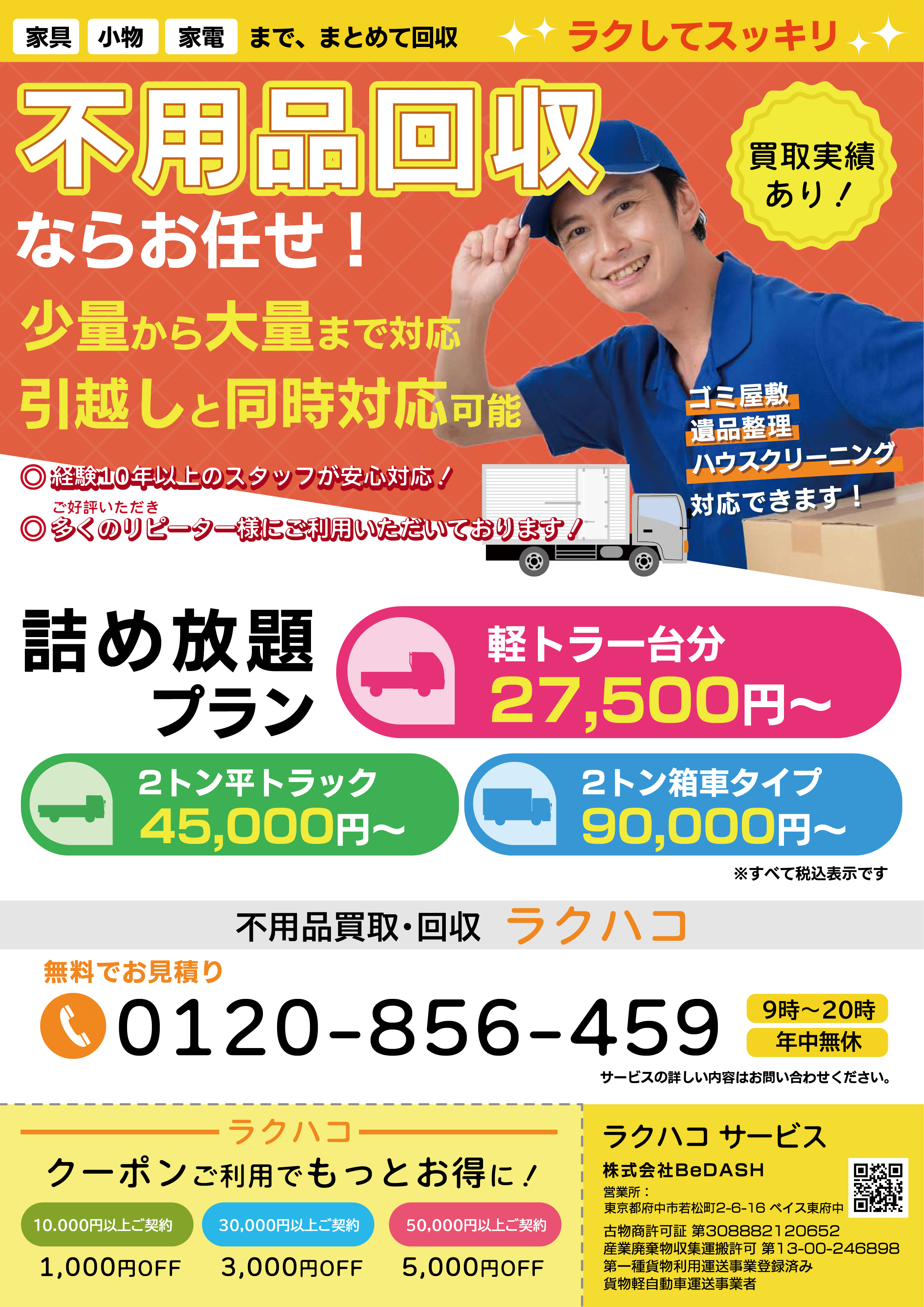 不用品回収も同時に対応できるので引越しがラクになります。